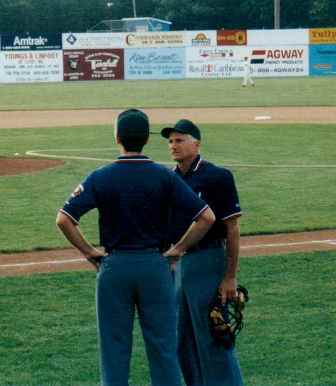TRBUA. During his umpire career Bob has been engaged at all levels of competition. After returning from the US Navy in 1954 he began to umpire Little League, Babe Ruth and High School games. Bob's career highlight came when he was selected to umpire the NYS Final 4 in 1986, working the Class C semi-finals and the Class A championship contest. Bob has also umpired in the Old Genesee Valley Semi-pro league during the late 60's and early 70's. Bob also served as a stand-by umpire for the New York Penn League's Batavia Clippers in the late 1970's. Bob also had a roll as an umpire in the 1983 film "The Natural" starting Robert Redford and Robert Duval. |